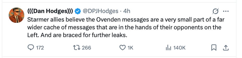 Nonetheless, we recognise that the Millenial Left was destroyed by an insane and hypocritical establishment which thought nothing of weaponising anti-semitism to install the feeble-minded Keir Starmer. So it is not with any moral judgement we appraise the likely fact that elements of the Left are now using this opportunity to destabilise the Starmer regime through leaks.