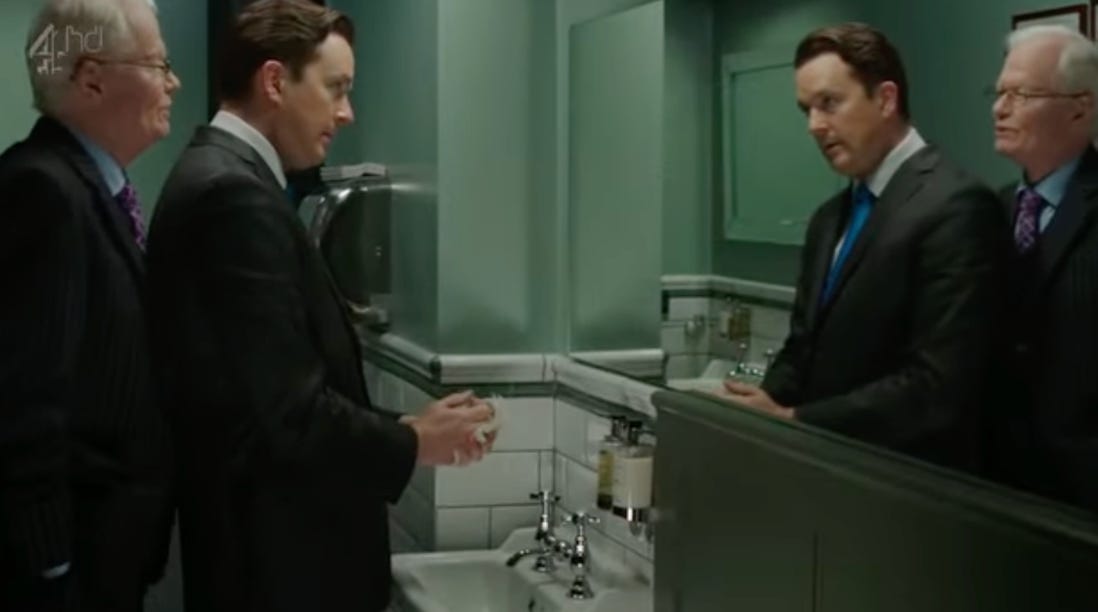 On his return flight to London Cameron is shown a tape of his own exploits in Little St James. Suitably chastened, he is much more pliable when Clegg gives him another call.