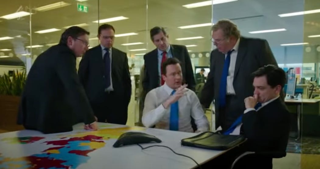 “Yes. Look, I know it’s unorthodox David, but this deal is slipping away. The Cabinet Secretary has chartered you a private flight from City Airport. It’s departing in exactly one hour. Look up David.”